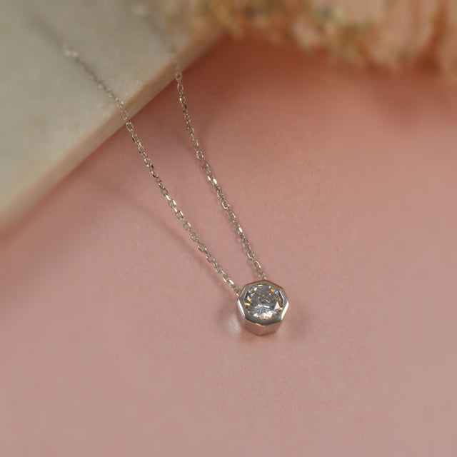 Silver Hexagon Shaped Rubover Set Cubic Zirconia Necklace