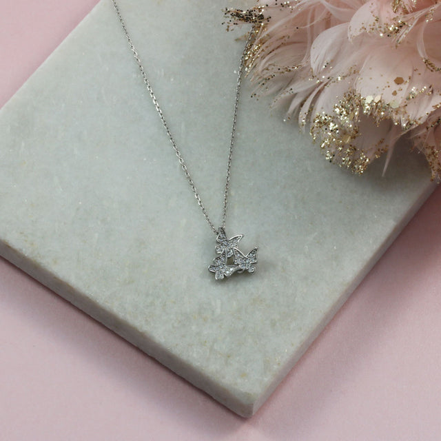 Silver Cluster Butterfly Pave Set with Cubic Zirconia Necklace