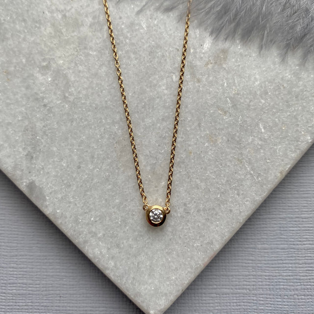 925 Silver Yellow Gold Trace Chain Necklace With Integrated Rub over Set CZ in the Centre