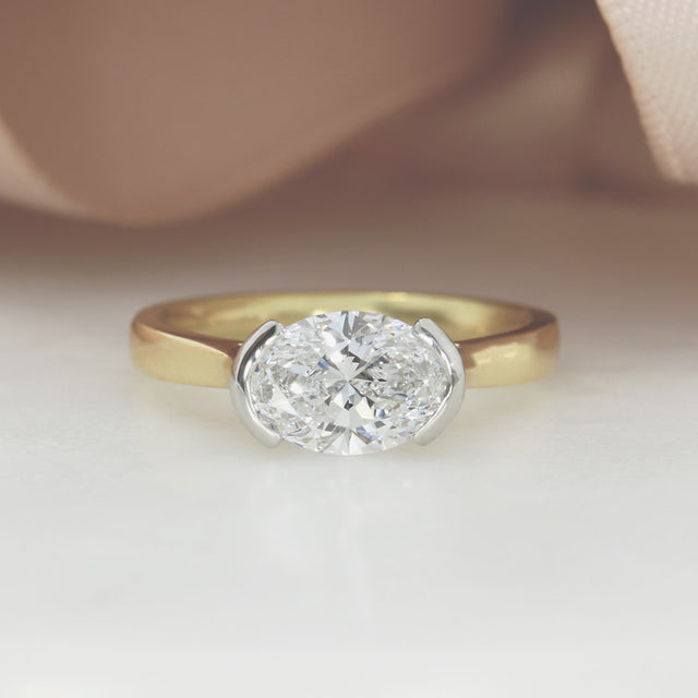 18ct Yellow Gold & Platinum Sideways Trap Set Oval Certified Laboratory Grown Diamond Solitaire Ring