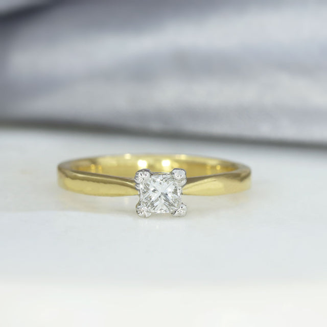 18ct Gold Certified Princess Cut Diamond Solitaire Ring 0.34ct