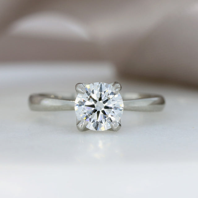 Platinum 4 Claw Set Round Brilliant Cut Lab Grown Diamond Solitaire Ring 1.08ct