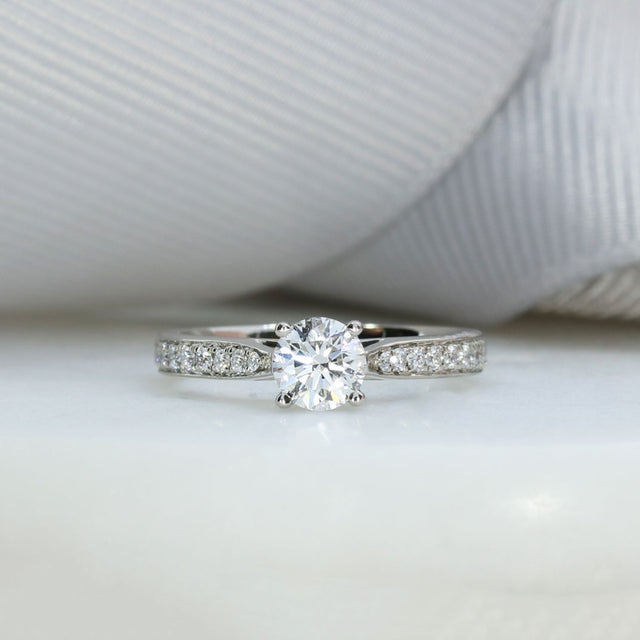 Pre Owned Platinum 4 Claw GIA Certified Brilliant Cut Diamond Solitaire Ring with Pave Set Diamond Shoulders