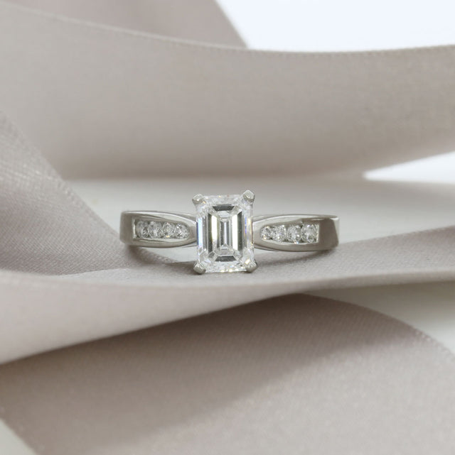 GIA Certified Pre Owned 1.00ct Emerald Cut Diamond Ring with Diamond Channel Set Tapered Shoulders