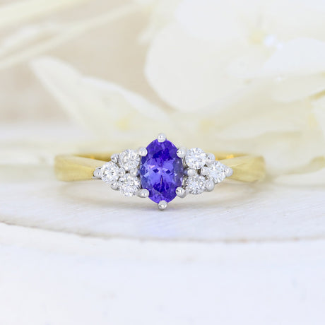£1,750.00Unit price /Unavailable18ct Yellow Gold Claw Set Oval Tanzanite Diamond Ring