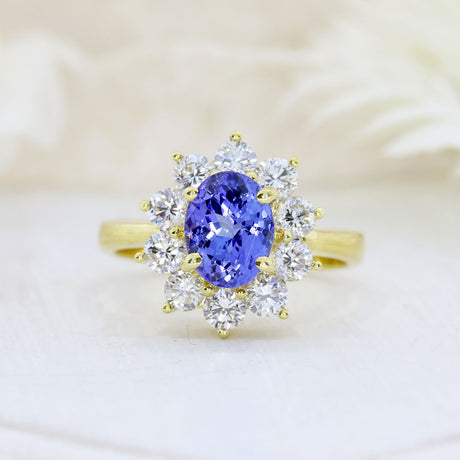 £4,795.00Unit price /Unavailable18ct Yellow Gold 1.80ct Oval Tanzanite & Diamond Cluster Ring