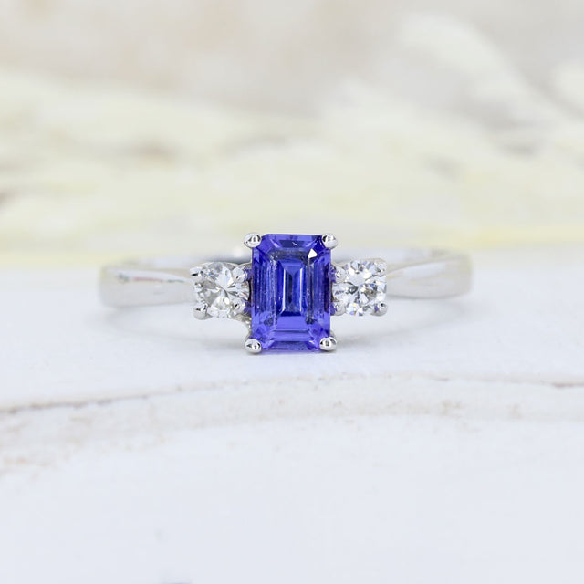 18ct White Gold Tanzanite & Diamond 3 Stone Ring
