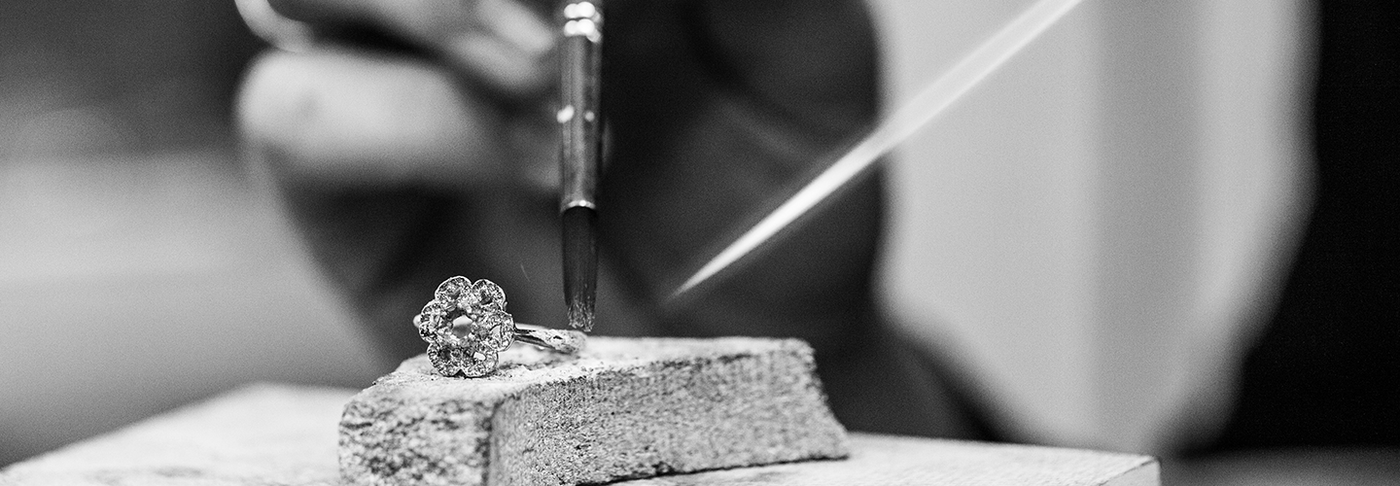Once all stones are set, the item then has a final polish and steam clean, before being passed to quality control and sent to the Assay Office, where the metal is hallmarked with its relevant metal and purity.