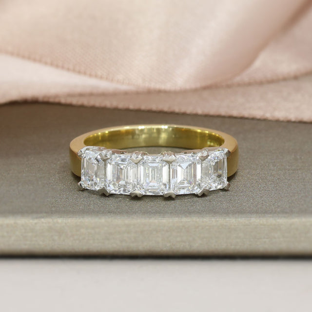 18ct Yellow Gold Claw Set Laboratory Grown Emerald Cut Diamond 5 Stone Ring 2.73ct