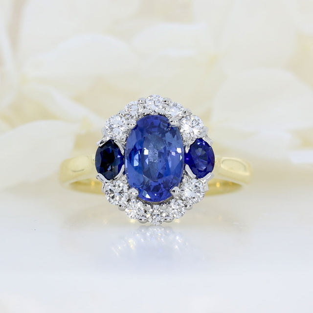 18ct & Platinum Set Sapphire 2.43ct & Diamond 0.41ct Cluster Ring Sapphire