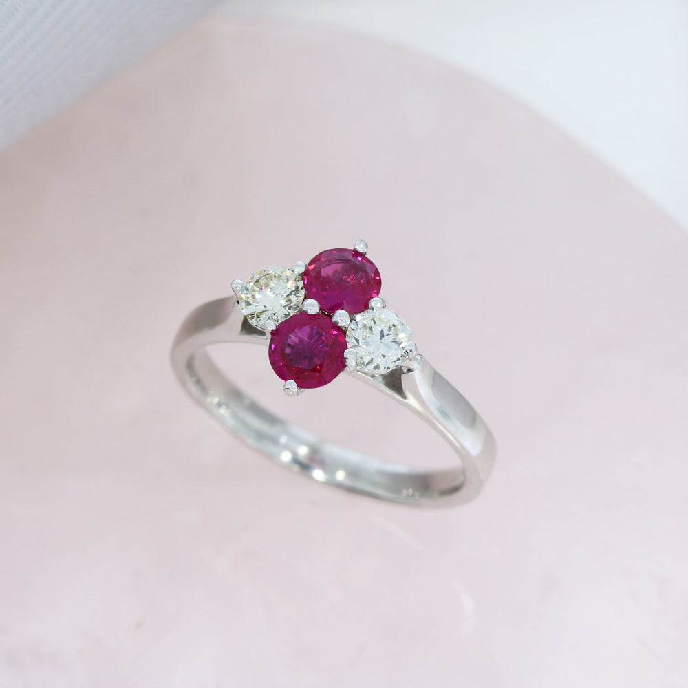 18ct White Gold Claw Set Ruby & Diamond 4 Stone Cluster Ring.