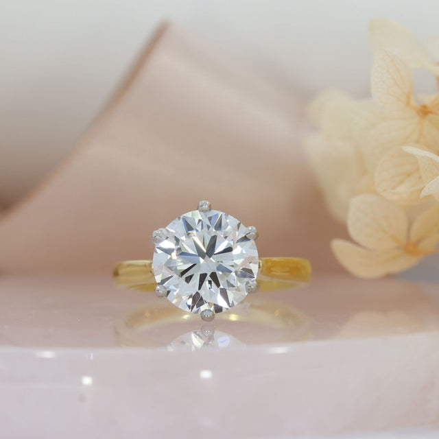 18ct Yellow Gold & Platinum Laboratory Grown Brilliant Cut IGI Certified Round Brilliant Cut 6 Claw Diamond Ring 4.00ct