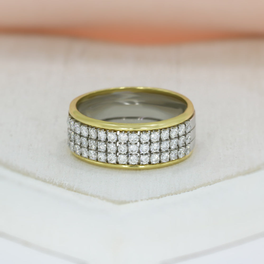 18ct Yellow & White Gold 3 Row Diamond Band 0.75ct